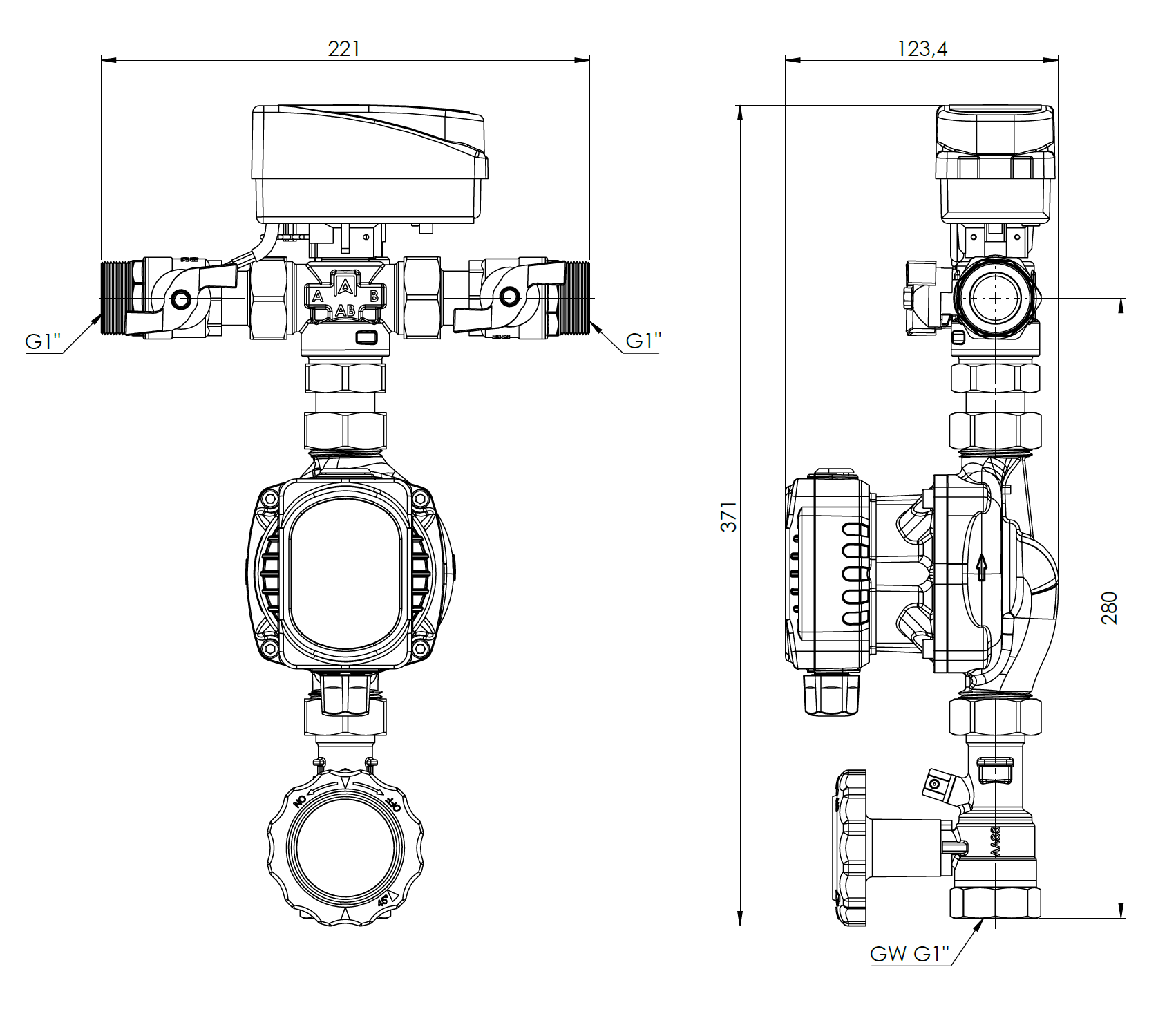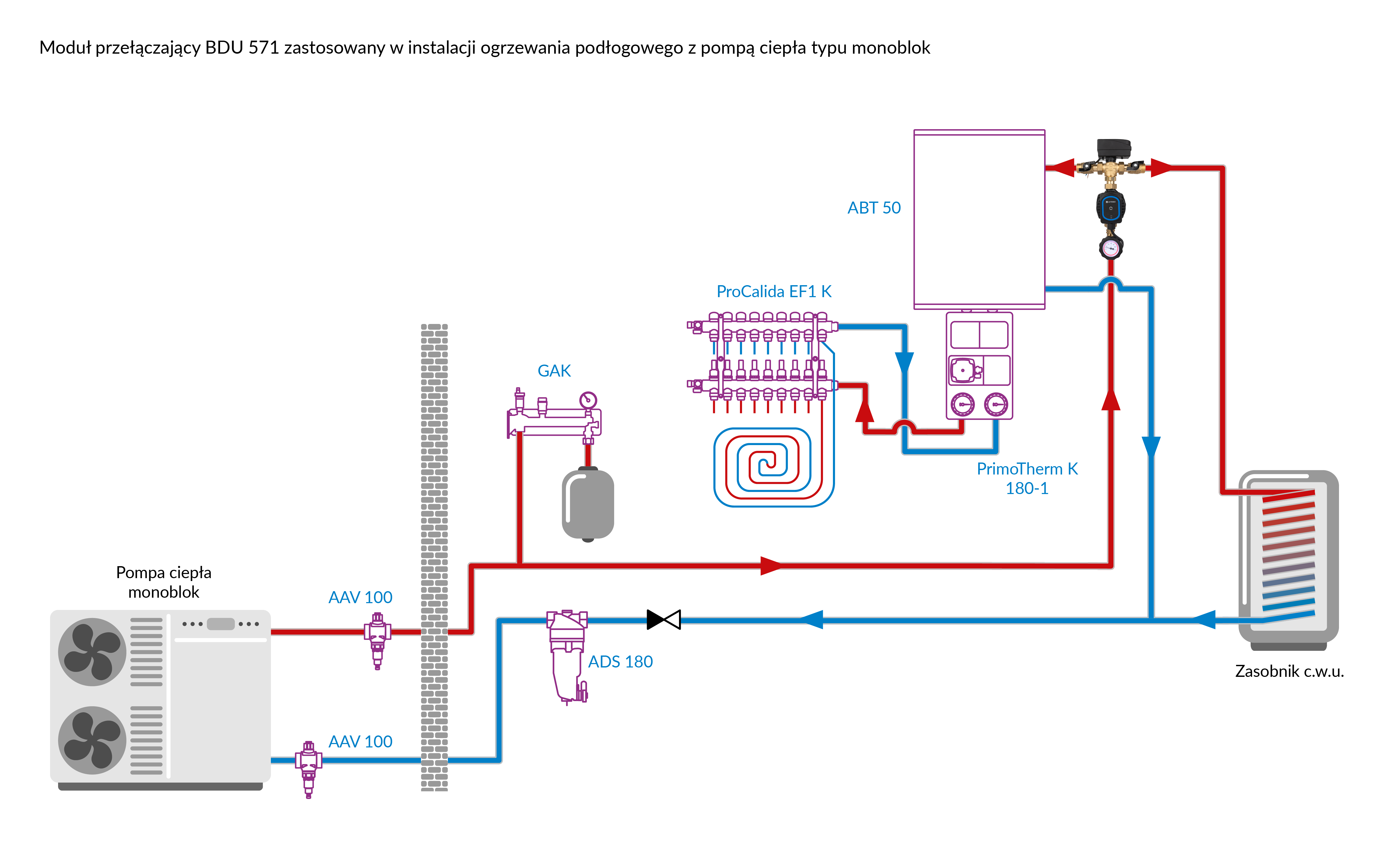 Moduł przełączający BDU 571 AP do pomp ciepła z zaworem AZV 643, pompa APH 160, armatura AFC