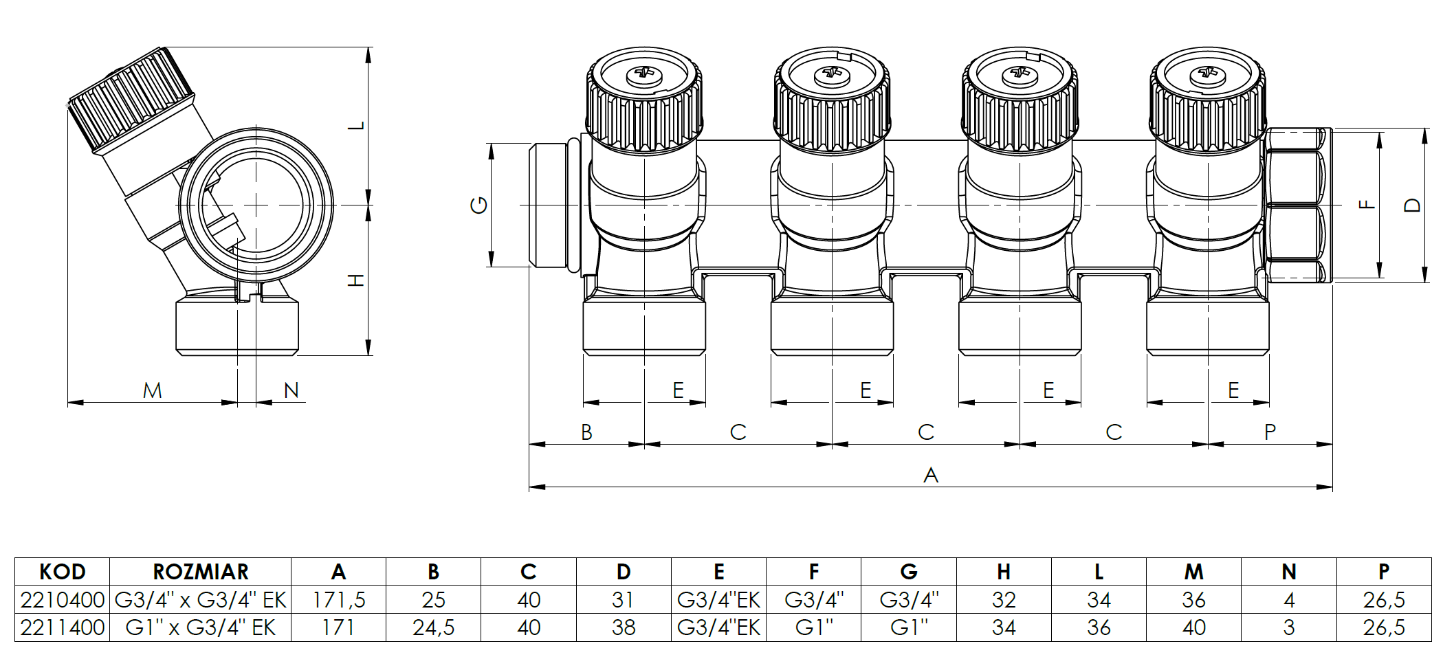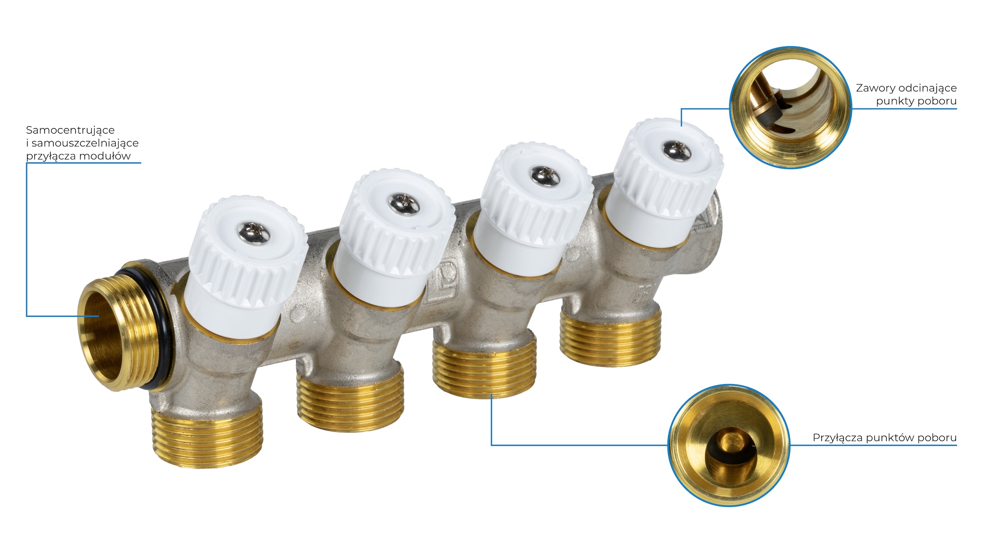 Montowany do istniejącego rozdzielacza w szafce rozdzielacza.