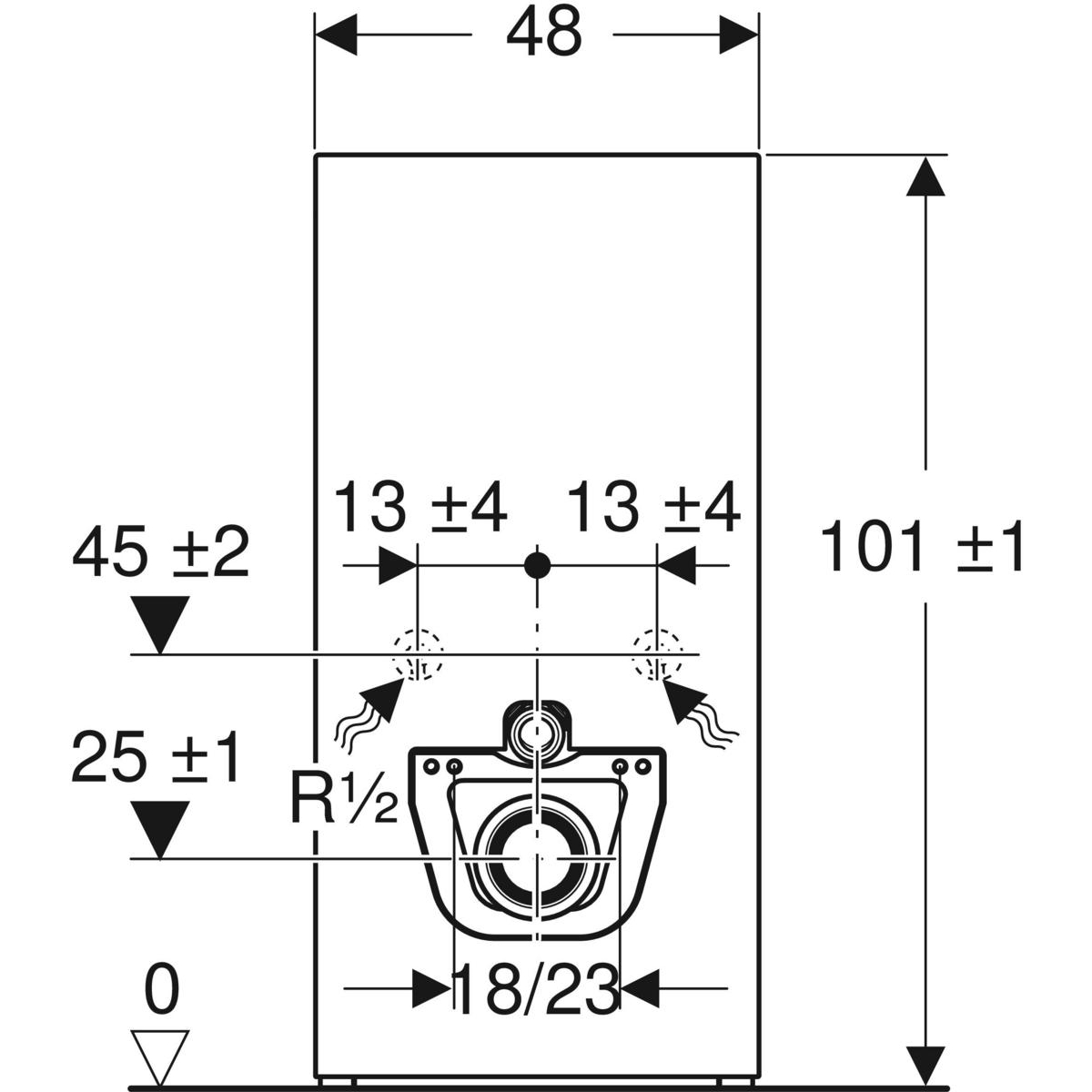 Seria 2025 Statyczna rama samonośna, zabezpieczona przed korozją powłoką malowaną proszkowo Rama do wiszących misek WC o wymiarach przyłączeniowych zgodnych z normą EN 33 i wysunięciu do 70 cm Z wysuwaną blachą do bocznego mocowania nad elementem na profilach metalowych lub drewnianych bądź na elementach konstrukcyjnych Geberit Duofix Alternatywna pozycja mocowania wspornika dystansowego Obrotowe stopy, odpowiednie do montażu w profilach U UW 50 i UW 75 Stopy można zamontować w szynie systemowej Geberit Duofix bez użycia narzędzi, bez dodatkowych komponentów Ocynkowane nogi montażowe, zabezpieczone przed korozją, antypoślizgowe Kolano przyłączeniowe z możliwością montażu na różnych głębokościach bez użycia narzędzi, zakres regulacji 45 mm Spłuczka podtynkowa Geberit Sigma 12 cm, z izolacją przeciwroszeniową Do uruchamiania z przodu, nadaje się do spłukiwania jednoilościowego, dwudzielnego i spłukiwania z funkcją "stop" W przypadku ustawień fabrycznych ponowne spłukiwanie możliwe natychmiast Prace montażowe i serwisowe przy spłuczce podtynkowej bez użycia narzędzi Przyłącze wody z tyłu lub na górze na środku Obudowa ochronna otworu rewizyjnego z możliwością skrócenia, chroni przed wilgocią i zabrudzeniami Z peszlem ochronnym do dopływu dla toalet myjących Geberit AquaClean i do przewodu przyłączeniowego Mocowanie przyłącza elektrycznego i Power & Connect Box Do metalowych i drewnianych ścianek konstrukcyjnych Do ścianek systemowych Geberit Duofix Do montażu w ściankach instalacyjnych o częściowej wysokości lub wysokości pomieszczenia Do montażu w ściankach działowych na wysokość pomieszczenia Do wysokości warstw podłogi 0–25 cm Do misek wiszących
