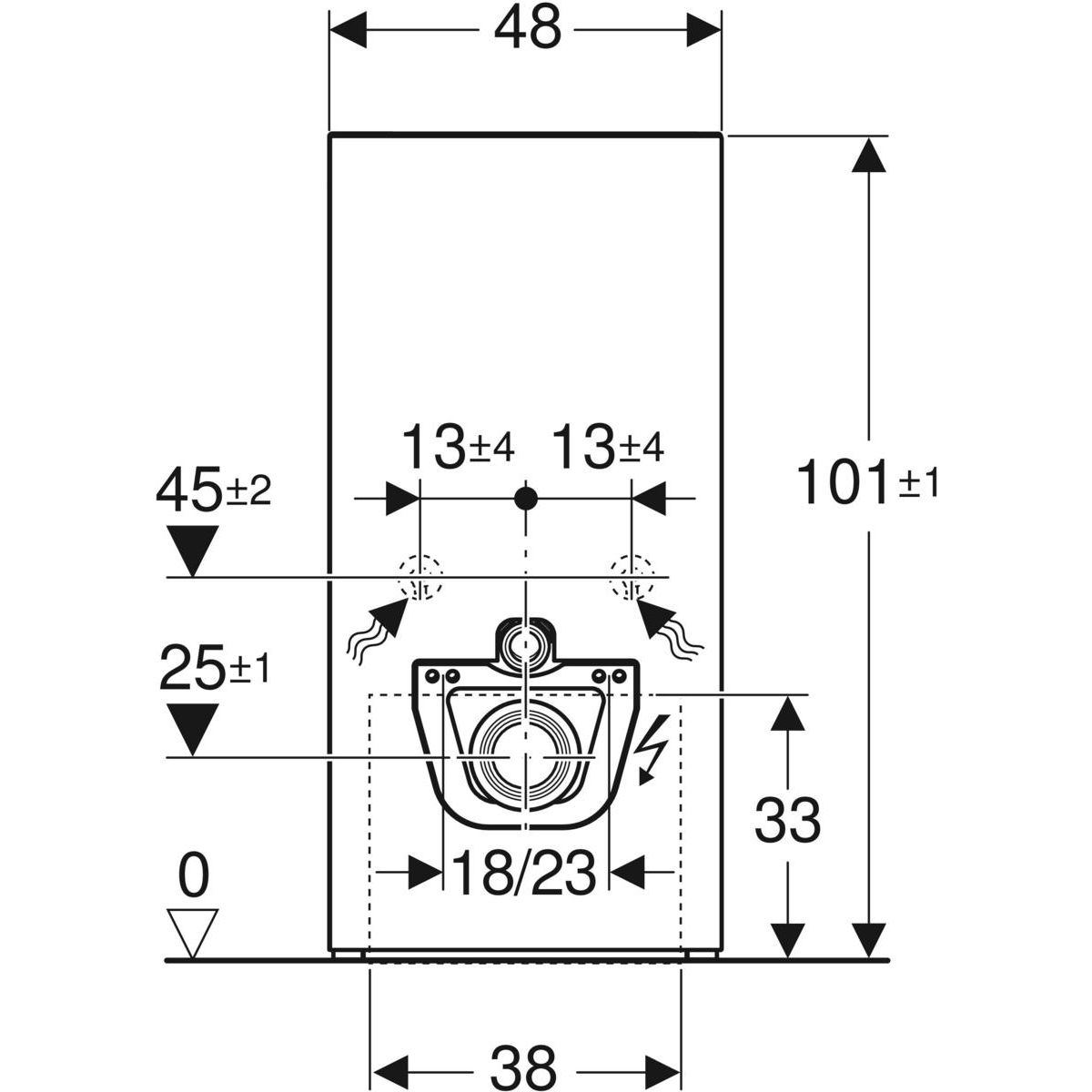 Seria 2025 Statyczna rama samonośna, zabezpieczona przed korozją powłoką malowaną proszkowo Rama do wiszących misek WC o wymiarach przyłączeniowych zgodnych z normą EN 33 i wysunięciu do 70 cm Z wysuwaną blachą do bocznego mocowania nad elementem na profilach metalowych lub drewnianych bądź na elementach konstrukcyjnych Geberit Duofix Alternatywna pozycja mocowania wspornika dystansowego Obrotowe stopy, odpowiednie do montażu w profilach U UW 50 i UW 75 Stopy można zamontować w szynie systemowej Geberit Duofix bez użycia narzędzi, bez dodatkowych komponentów Ocynkowane nogi montażowe, zabezpieczone przed korozją, antypoślizgowe Kolano przyłączeniowe z możliwością montażu na różnych głębokościach bez użycia narzędzi, zakres regulacji 45 mm Spłuczka podtynkowa Geberit Sigma 12 cm, z izolacją przeciwroszeniową Do uruchamiania z przodu, nadaje się do spłukiwania jednoilościowego, dwudzielnego i spłukiwania z funkcją "stop" W przypadku ustawień fabrycznych ponowne spłukiwanie możliwe natychmiast Prace montażowe i serwisowe przy spłuczce podtynkowej bez użycia narzędzi Przyłącze wody z tyłu lub na górze na środku Obudowa ochronna otworu rewizyjnego z możliwością skrócenia, chroni przed wilgocią i zabrudzeniami Z peszlem ochronnym do dopływu dla toalet myjących Geberit AquaClean i do przewodu przyłączeniowego Mocowanie przyłącza elektrycznego i Power & Connect Box Do metalowych i drewnianych ścianek konstrukcyjnych Do ścianek systemowych Geberit Duofix Do montażu w ściankach instalacyjnych o częściowej wysokości lub wysokości pomieszczenia Do montażu w ściankach działowych na wysokość pomieszczenia Do wysokości warstw podłogi 0–25 cm Do misek wiszących