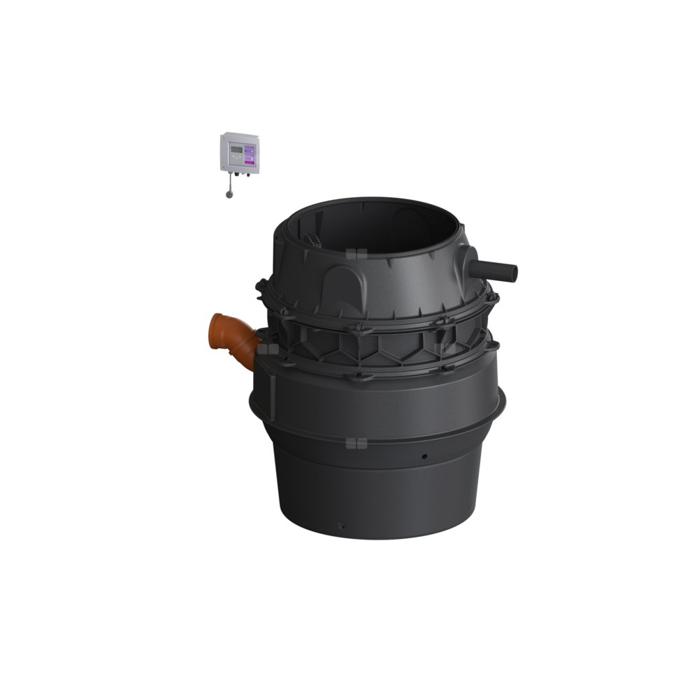 KESSEL Przepompownia Aquapump XL, Tronic, ścieki fekalne, zabudowa w ziemi, wysokość 1500 mm, sterowanie pompą przez sterownik, z pompą zatapialną SPF 1400, typ pracy S3 - 50%, rozpoznawania poziomu pneumatyczny