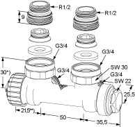 Termostatyczny zawór Multilux stosowany jest do podłączenia grzejników dolnozasilanych z przyłączem dwupunktowym, np. grzejników łazienkowych, grzejników uniwersalnych, itp. Rozstaw osi przyłączy 50 mm.