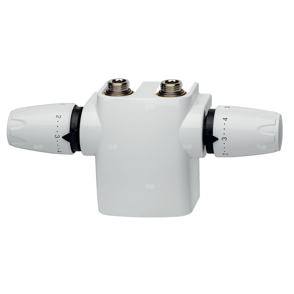 Do podłączenia grzejników dolnozasilanych i ogrzewania podłogowego dla sterowania temperaturą pomieszczenia oraz ograniczenia temperatury powrotnej czynnika - RTL. Odległość między środkami złączy wynosi 50 mm. Do montażu kątowego. Obie wkładki termostatyczne zawierają wkładkę V-exact II z precyzyjną bezstopniową nastawą wstępną od 1 do 8.