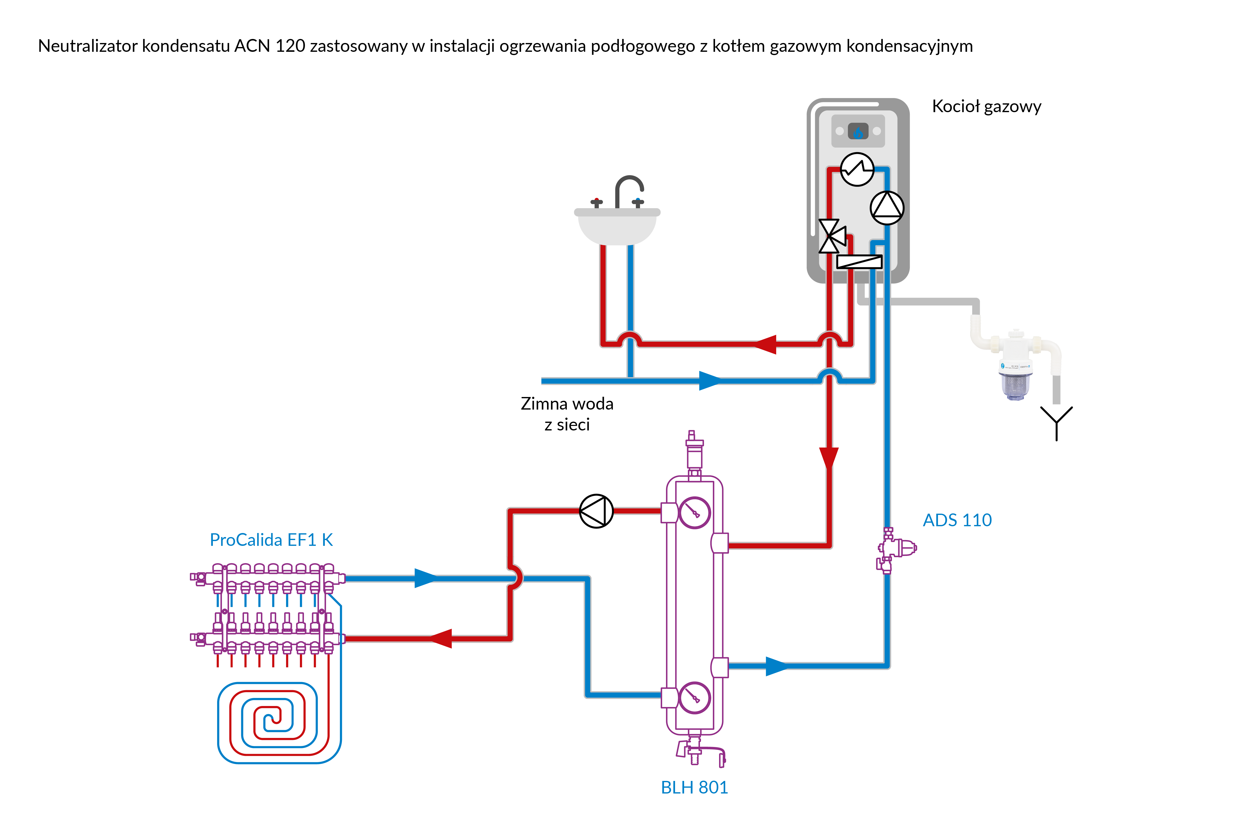 Stosowany w instalacjach z kotłem gazowym kondensacyjnym o mocy do 35 kW.Montowany pod kotłem na rurze odprowadzającej kondensat do kanalizacji, szamba lub przydomowej oczyszczalni ścieków.
