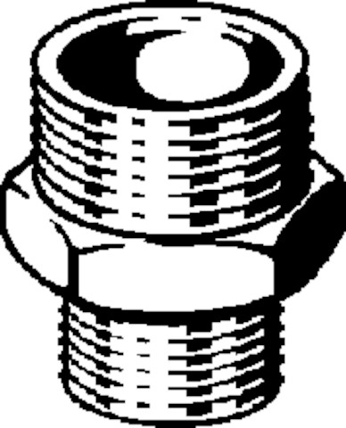 Nypel redukcyjny, brąz, gwint R. Wyposażenie: Wielokąt, nr wzoru 3245, nr kat. 443 177, R1: 3 R2: 2½
