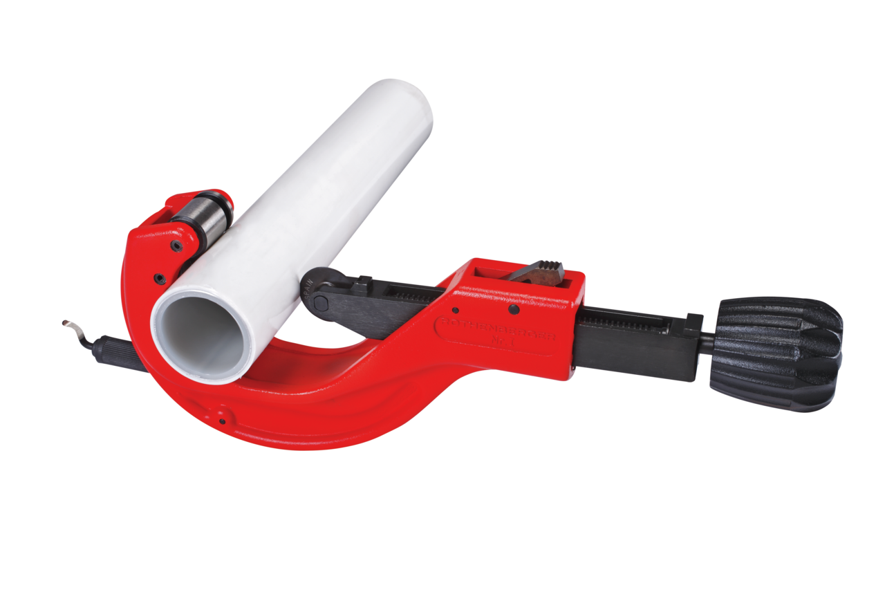 Użyj TUBE CUTTER PL Automatik ze zintegrowaną prowadnicą teleskopową z grzechotką do szybkiego i łatwego cięcia rur z tworzyw sztucznych.