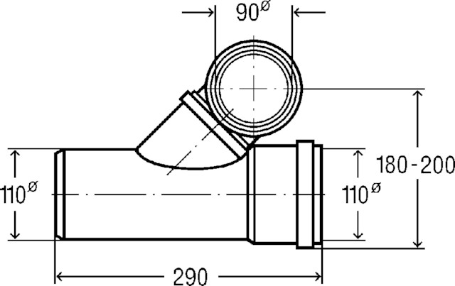 Odgałęzienie przeznaczenie: montaż szeregowy WC, tworzywo sztuczne, nr wzoru 8092 DN1: 100 DN2: 90 DN3: 100