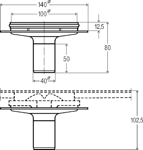 Advantix-odpływ liniowy-odpływ, odpływ pionowy, nie występuje: syfon. Wyposażenie: Sitko. Dane techniczne: wydajność odpływu przy wysokości spiętrzenia 10 mm 1,2 l/s, wydajność odpływu przy wysokości spiętrzenia 20 mm 1,2 l/s, nr wzoru 4982.83, nr kat. 766 955, DN: 40