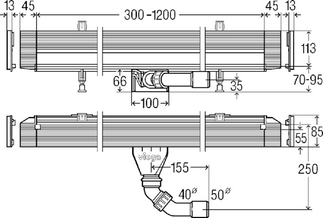 Odpływ prysznicowy prostokątny VIEGA 496810, 1200 x 113 x 85 mm, dł: 1200 mm, z syfonem