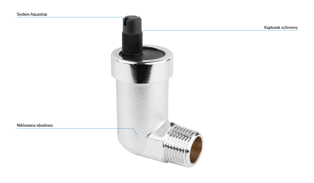 Odpowietrznik automatyczny AFRISO kątowy z zaworkiem "Aqua-Stop" GZ mosiądz niklowany fi 1/2''