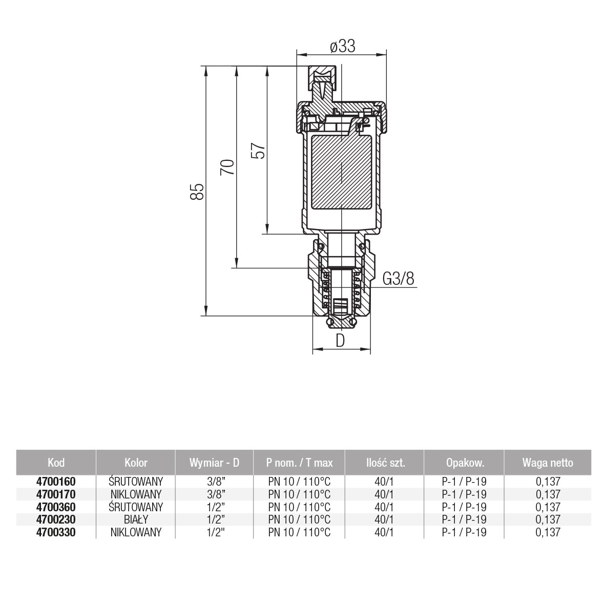 Odpowietrznik automatyczny VALVEX ALFA GZ niekiel fi 1/2''
