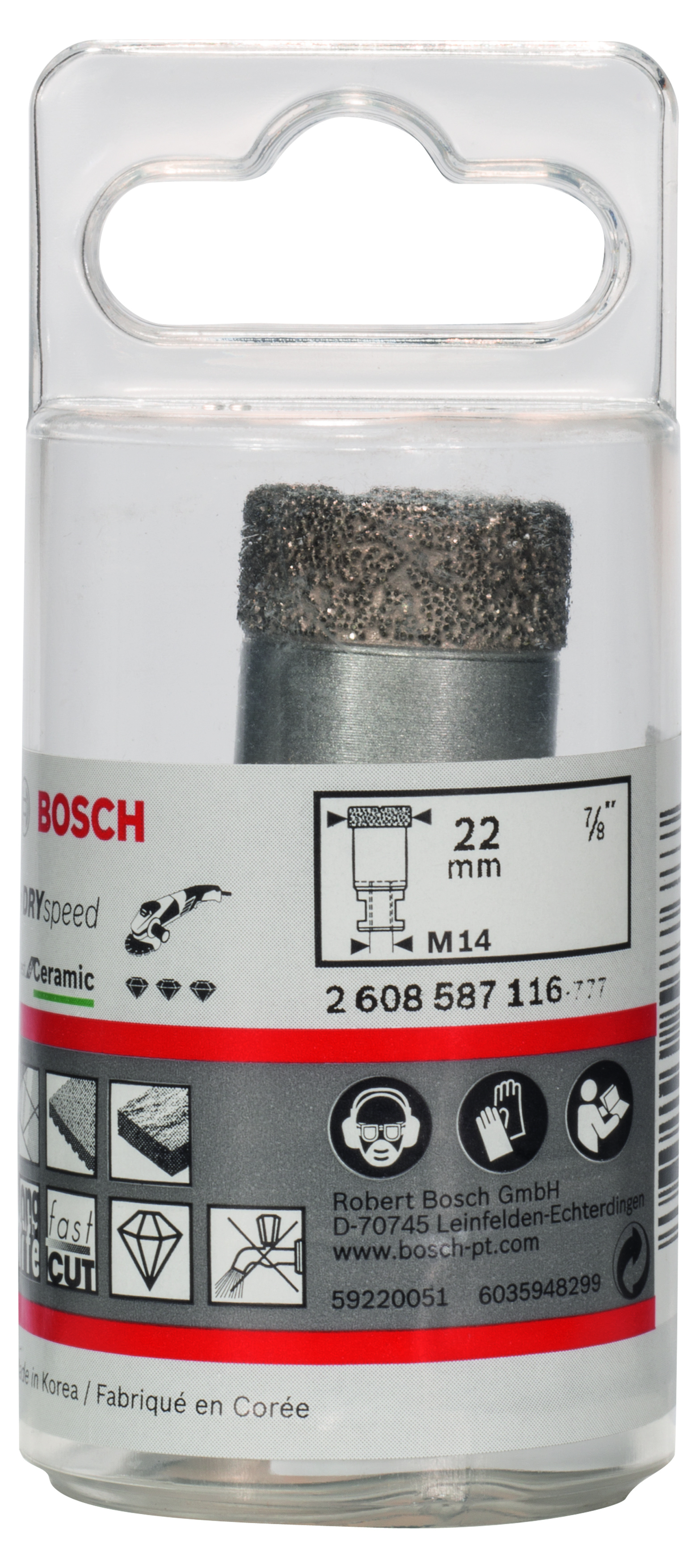 Diamentowa koronka Dry Speed charakteryzuje się wysoką trwałością w przypadku wiercenia na sucho w twardej ceramice