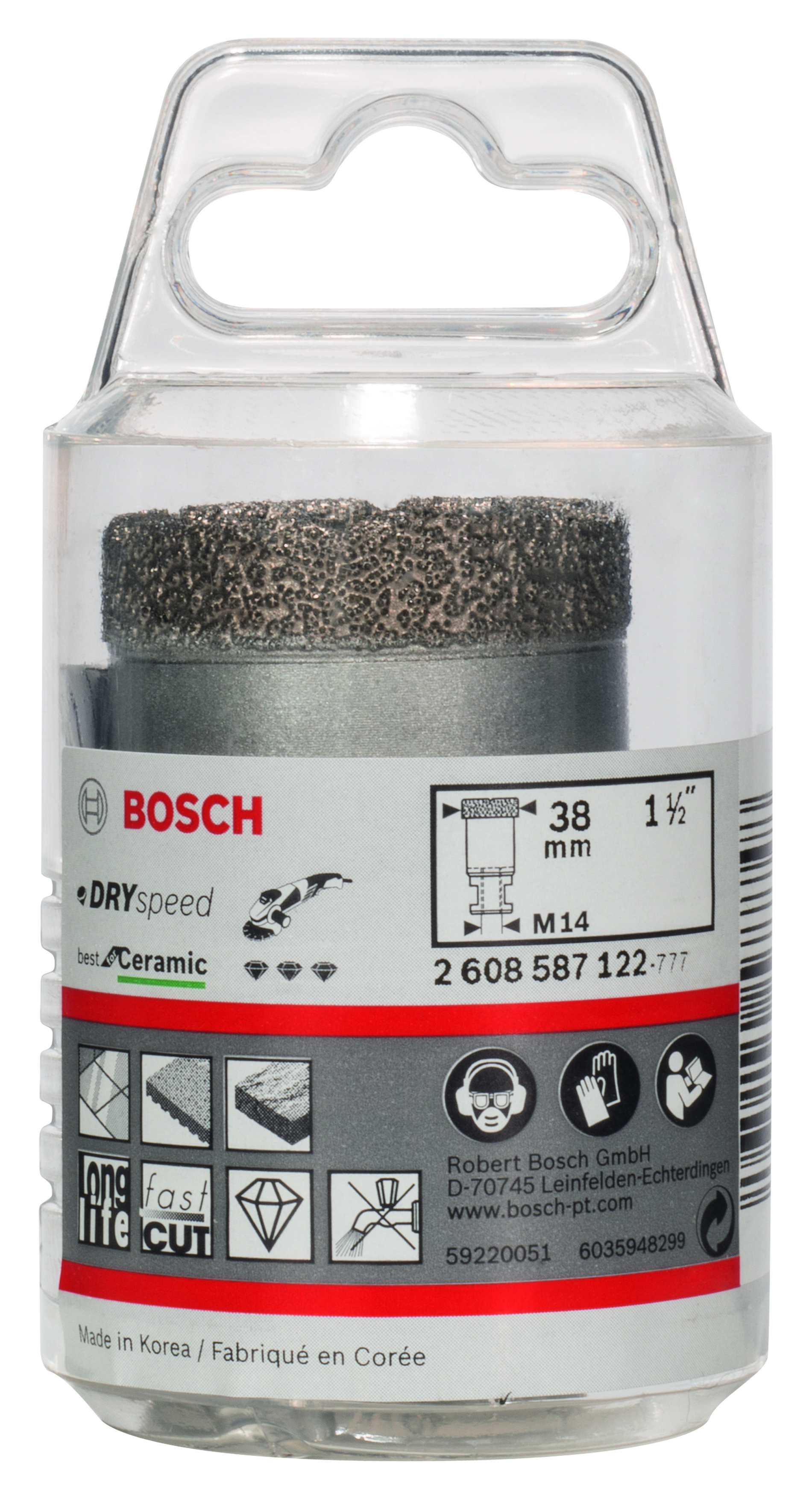 Diamentowa koronka Dry Speed charakteryzuje się wysoką trwałością w przypadku wiercenia na sucho w twardej ceramice