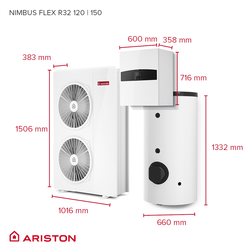 Pakiet - Pompa ciepła powietrze-woda split ARISTON NIMBUS FLEX 120 S-T NET R32 9.5 kW 400 V + Moduł naścienny SENSYS HD + Moduł komunikacji internetowej (aplikacja Ariston Net)