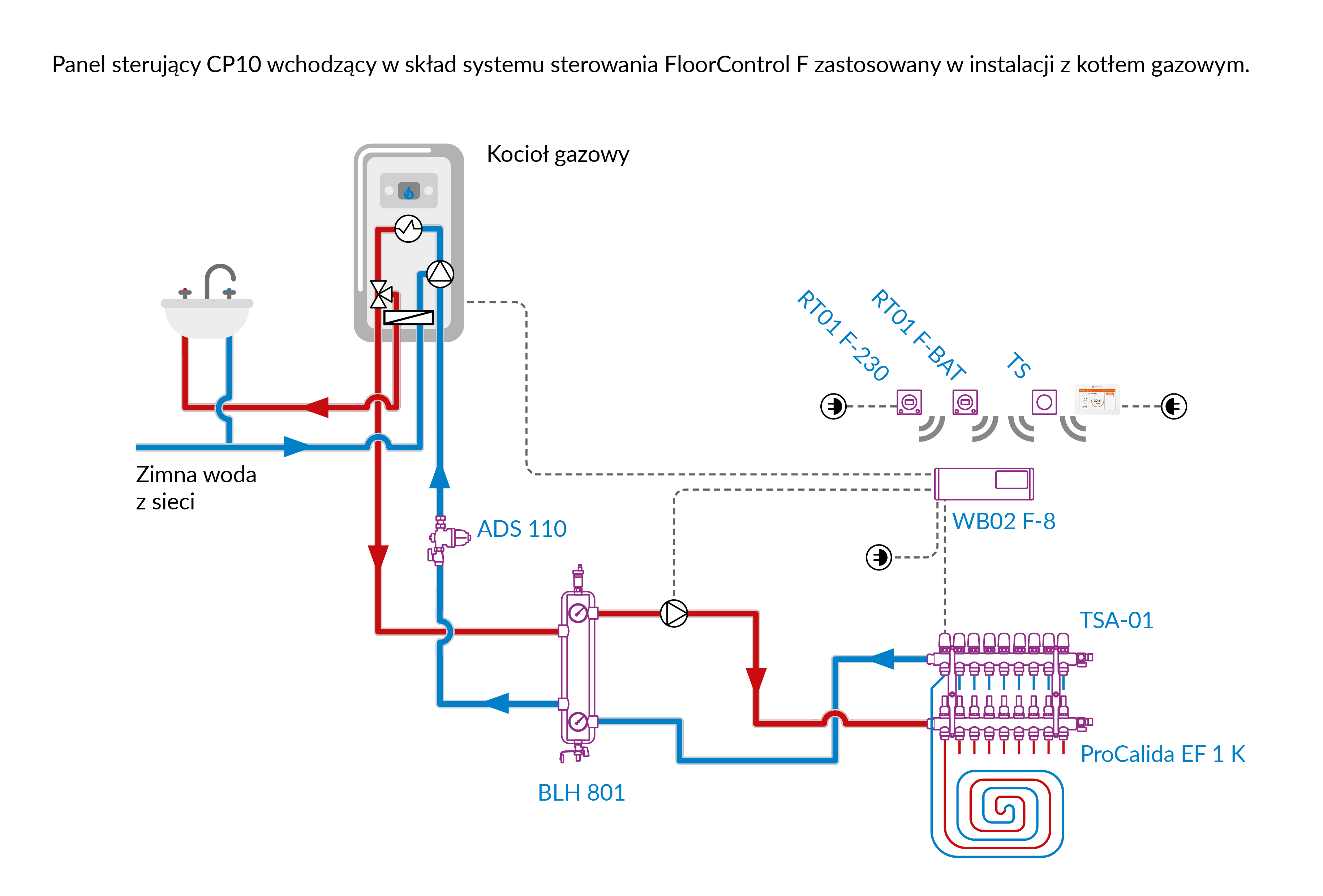 Stosowany w instalacjach płaszczyznowych grzewczych i chłodzących.Montowany na ścianie w puszce elektrycznej.