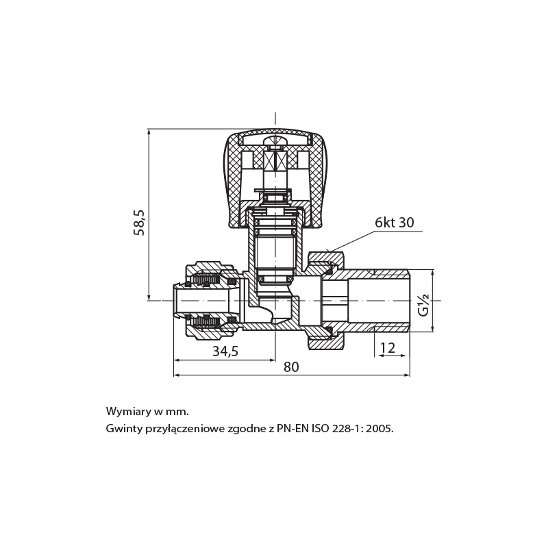 PHA-030/PEX Zawór grzejnikowy prosty z zaciskiem Pex/Al 1/2"