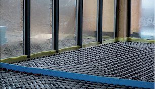 Płyta izolacyjna QIK z tkaniną polipropylenową 30 mm EPS 100 PLUS (pasek klejący, składa się z płyty styropianowej EPS, pokrytej tkaniną polipropylenową. Tkanina z rastrem - wykonanym nadrukiem kraty o rozmiarze 5 cm, mającym za zadanie ułatwienie równego rozłożenia rur grzewczych. Dodatkowo płyty posiadają pasek klejący ułatwiający montaż do podłoża. Tkanina polipropylenowa bardzo mocno utrzymuje spinki montażowe. Podano cenę za 1 m².
