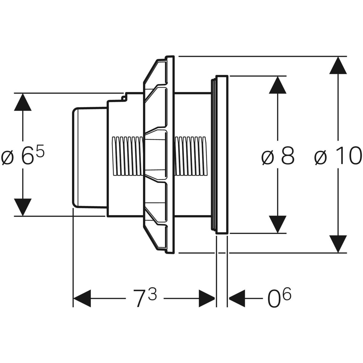 Kształt okrągły Możliwość połączenia z przyciskami uruchamiającymi Geberit do spłukiwania jednoilościowego, spłukiwania dwudzielnego i spłukiwania z funkcją "stop" lub płytą przykrywającą Geberit Do zdalnego uruchamiania w sposób pneumatyczny spłuczek natynkowych i podtynkowych Geberit Do uruchamiania spłukiwania dwudzielnego Do spłuczek podtynkowych Delta 12 cm Do spłuczek podtynkowych Sigma 12 cm Do spłuczek podtynkowych Omega 12 cm Do spłuczek natynkowych AP123 Do spłuczek natynkowych AP140 Do mebli łazienkowych Kolor główny: Chrom matowy Powierzchnia: Z powłoką easy-to-clean