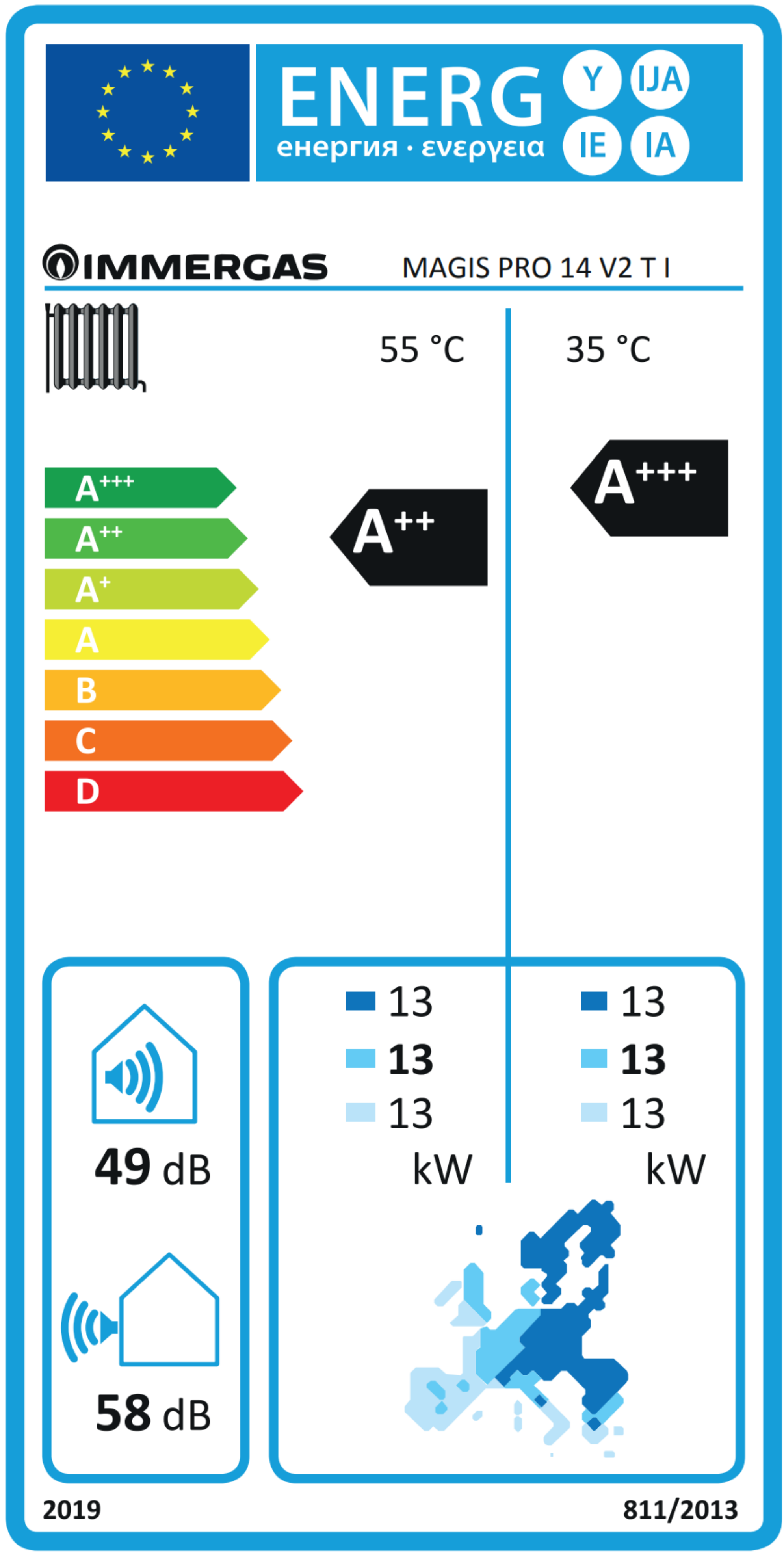 Klasa ErP dla c.o. 55°C, klimat umiarkowany zgodnie z dyrektywą ErP (2019/125/WE)