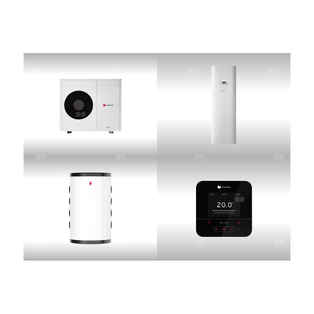 Pompa ciepła powietrzna powietrze-woda monoblok SAUNIER DUVAL GeniaAir HA 7-6 O 7 kW 230 V + Centrala grzewcza FEW 200/6 + Moduł komunikacji internetowej SR 940f + Zasobnik buforowy WR RW 50 + Regulator SRC 720