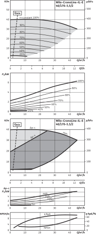 Pompa obiegowa WILO CronoLine-IL-E 40/170-5,5/2 IE4 typu in-line z silnikiem znormalizowanym 50/60 Hz, moc silnika 5.5kW 10.6 A 2900 obr/min, wlot Kołnierz DN 40