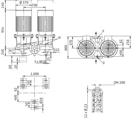 Pompa obiegowa WILO CronoTwin-DL 200/260-22/4-IE3 typu in-line z silnikiem znormalizowanym 50 Hz, moc silnika 22kW 40.2 A 1450 obr/min, wlot Kołnierz DN 200