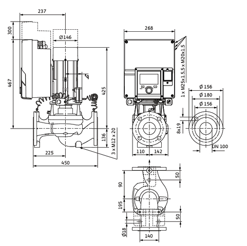 Pompa obiegowa WILO Stratos GIGA 2.0-I 100/1-17/2,2 typu in-line z silnikiem znormalizowanym 50/60 Hz, moc silnika 2.2kW 4 A 2890 obr/min, wlot Kołnierz DN 100