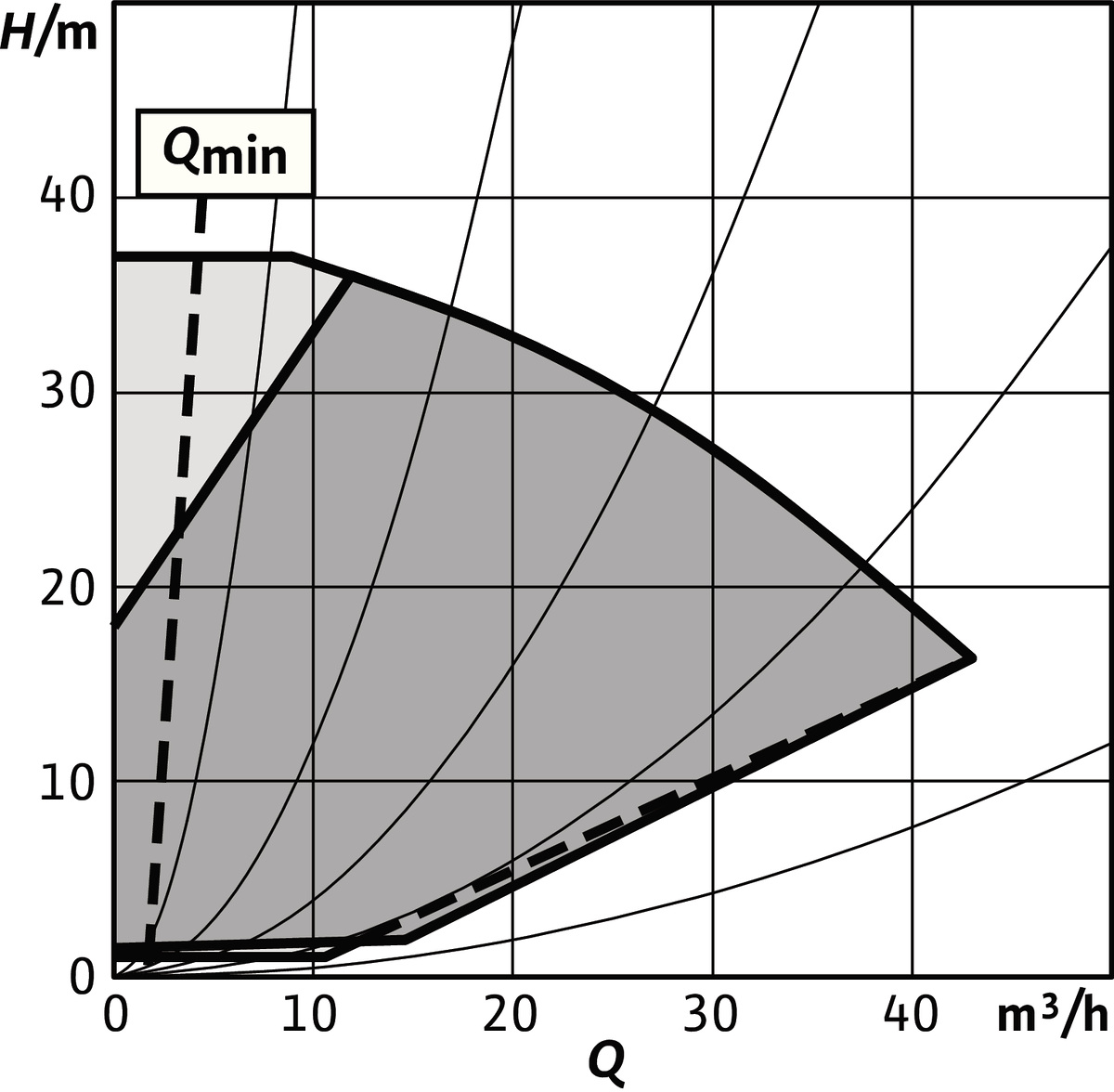 - Nastawne ograniczenie przepływu przez funkcję Q-Limit (Qmin. i Qmax.)