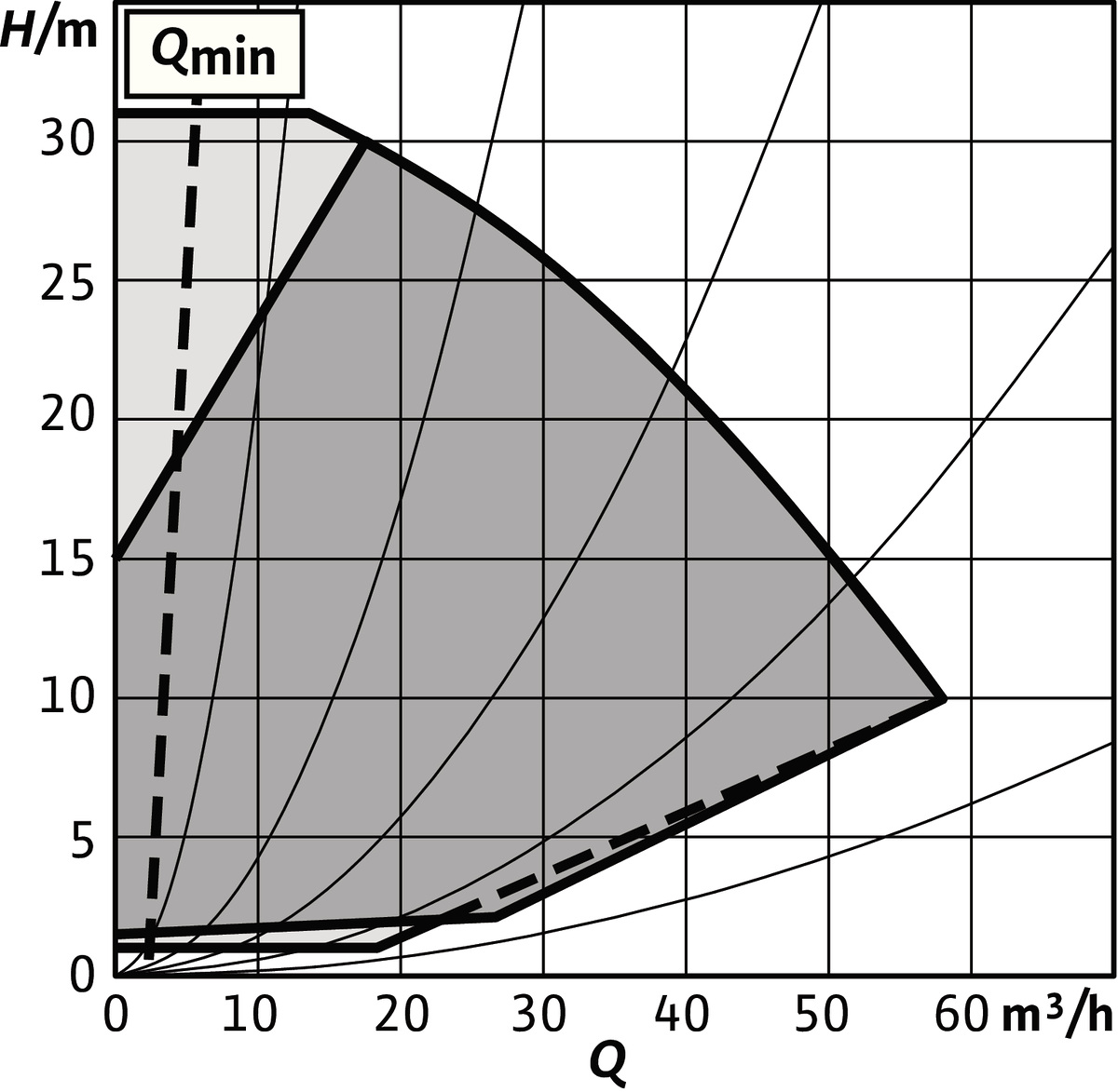- Nastawne ograniczenie przepływu przez funkcję Q-Limit (Qmin. i Qmax.)