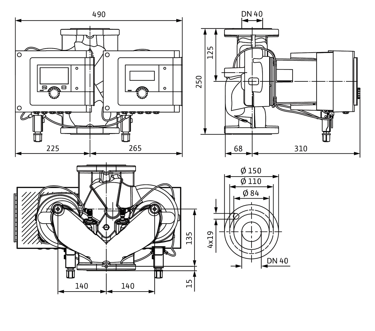 Pompa podwójna bezdławnicowa typu Inline o najwyższej sprawności z silnikiem EC i elektronicznym dopasowaniem wydajności. Stosowanie dla wody ciepłej, zimnej oraz mieszanki wody i glikolu. Współczynnik sprawności energetycznej (EEI) w zależności od typu pompy ≤ 0,17 i ≤ 0,19.
