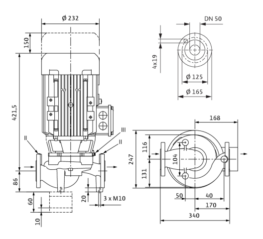 Pompa obiegowa WILO VeroLine-IPL 50/150-4/2-IE3 typu in-line z silnikiem znormalizowanym 50 Hz, moc silnika 4kW 7.75 A 2900 obr/min, wlot Kołnierz DN 50