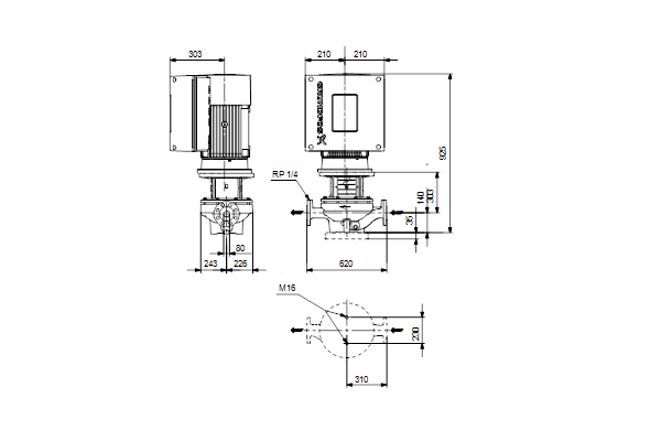 Jednostopniowa, spiralna pompa z krótkim sprzęgłem i króćcem ssawnym i tłocznym, o identycznej średnicy, w jednej osi (in-line). Pompy mają konstrukcję umożliwiającą demontaż od góry (typu "top-pull-out"), tj. głowica napędowa (silnik, głowica pompy i wirnik) może być wyjmowana w celu konserwacji lub serwisowania, gdy korpus pompy pozostaje przyłączony do rurociągów.