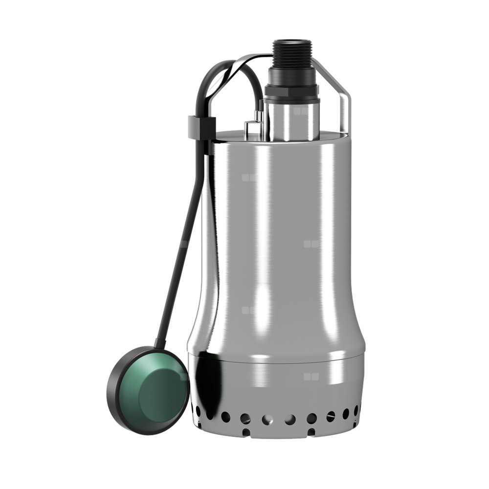 Całkowicie zanurzona pompa zatapialna do wody zanieczyszczonej, do przenośnego ustawienia mokrego, do tłoczenia ścieków bez fekaliów lub wody zanieczyszczonej. Wirnik z tworzywa sztucznego, hydraulika i korpus silnika ze stali nierdzewnej. Hydraulika z pionowym przyłączem gwintowanym ze zintegrowanym zabezpieczeniem przed przepływem zwrotnym i wirnikiem o swobodnym przepływie. Silnik na prąd zmienny z chłodzeniem płaszczowym (do chłodzenia wykorzystywane jest przetłaczane medium między korpusem pompy i korpusem silnika), zintegrowanym kondensatorem roboczym i termiczną kontrolą silnika przed przeciążeniem z automatycznym ponownym włączeniem. Kabel zasilający o długości z zamontowaną wtyczką z uziemieniem i wyłącznikiem pływakowym do automatycznego sterowania poziomem. Do uszczelnienia po stronie medium służy uszczelnienie mechaniczne, natomiast po stronie silnika pierścień uszczelniający wału.