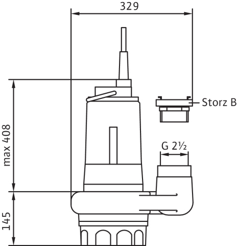 Całkowicie zanurzona pompa zatapialna do wody zanieczyszczonej, pionowe ustawienie mokre, do tłoczenia wody zanieczyszczonej i zawierającej piasek Korpus hydrauliczny i wirnik z żeliwa szarego, korpus silnika z aluminium. Przyłącze tłoczne z pionowym odpływem ciśnieniowym i złączem typu Storz. Samochłodzący silnik w wersji na prąd trójfazowy, z odłączanym kablem zasilającym i wtyczką wg standardu CEE z funkcją zamiany faz. Do uszczelnienia po stronie medium i silnika służy uszczelnienie mechaniczne. Agregat można stosować w podsysającym trybie pracy bez ograniczeń.