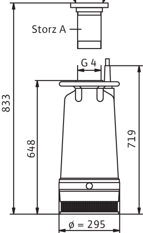 Całkowicie zanurzona pompa zatapialna do wody zanieczyszczonej, pionowe ustawienie mokre, do tłoczenia wody zanieczyszczonej i zawierającej piasek Korpus hydrauliczny i wirnik z żeliwa szarego, korpus silnika z aluminium. Przyłącze tłoczne z centrycznym i pionowym odpływem ciśnieniowym i złączem typu Storz. Silnik chłodzony powierzchniowo w wersji na prąd trójfazowy z chłodzeniem płaszczowym i komorą uszczelnienia. Rozłączny kabel zasilający z wtyczką wg standardu CEE z funkcją zamiany faz. Uszczelnienie zapewniają dwa niezależne od kierunku obrotów uszczelnienia mechaniczne. Agregat można stosować w podsysającym trybie pracy bez ograniczeń.