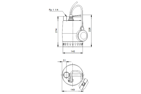 Pionowa, jednostopniowa pompa zatapialna ze stali nierdzewnej z pionowym króćcem tłocznym, z silnikiem 1-fazowym z klasą izolacji F i wbudowanym zabezpieczeniem termicznym.