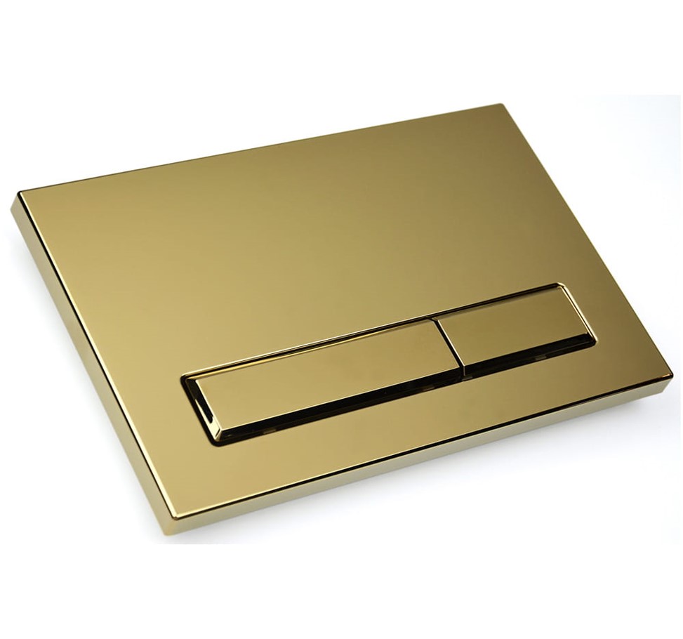Elegancka, jednokolorowa płytka przycisków do WC wykonana z tworzywa o złotej, chromowanej powierzchni. Płytka pasuje do stelaży podtynkowych KK-POL Premium, Standard, Economic oraz KK-POL Professional wolnostojący, do zabudowy niskiej i ciężkiej.