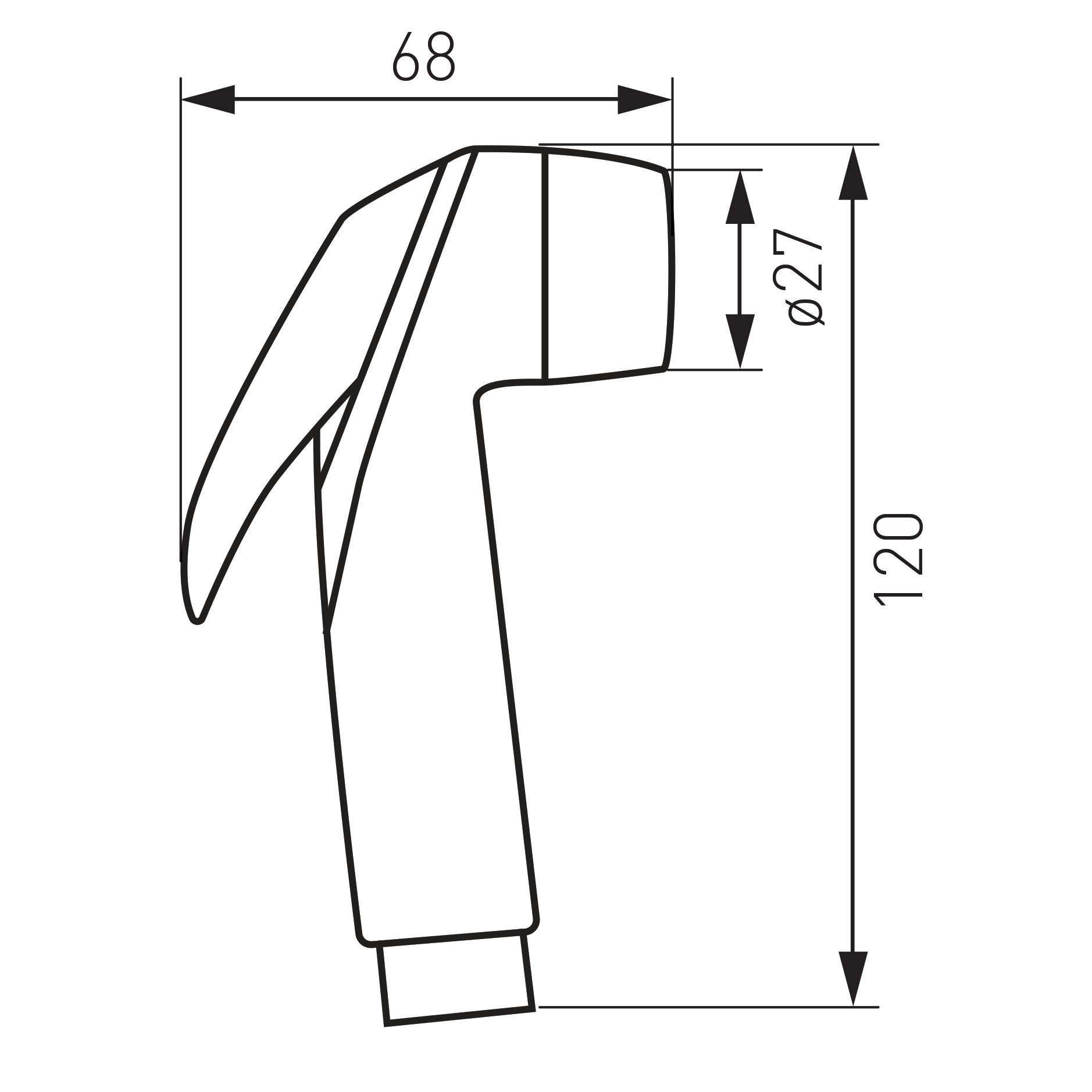 Rączka bidetowa do baterii umywalkowo - bidetowej lub baterii bidetowej podtynkowej. Wyposażona w ergonomiczny przycisk. Pasuje do węża natryskowego z końcówką 1/2".