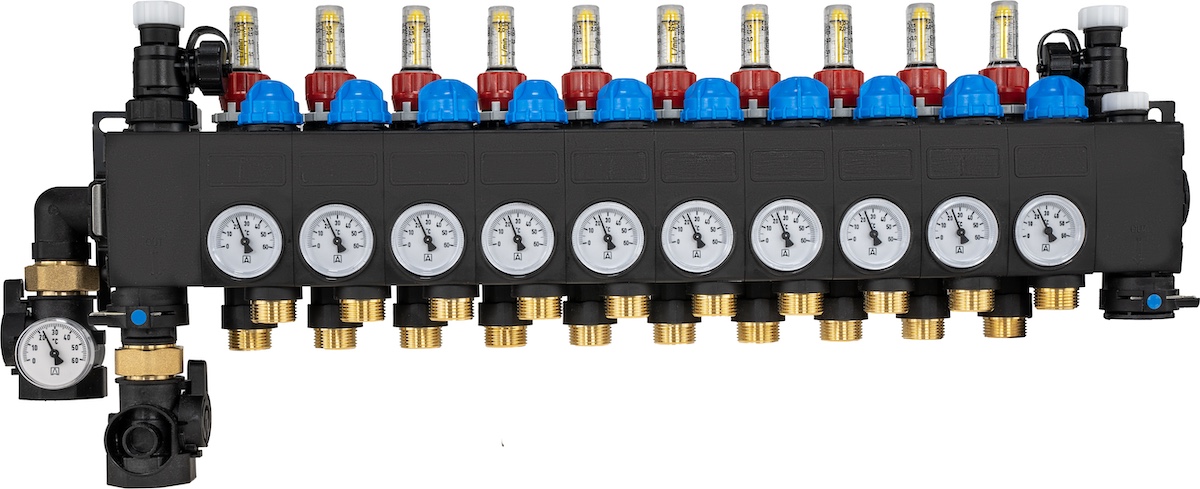 Rozprowadza ciepło / chłód ze źródła na poszczególne pętle instalacji płaszczyznowej.