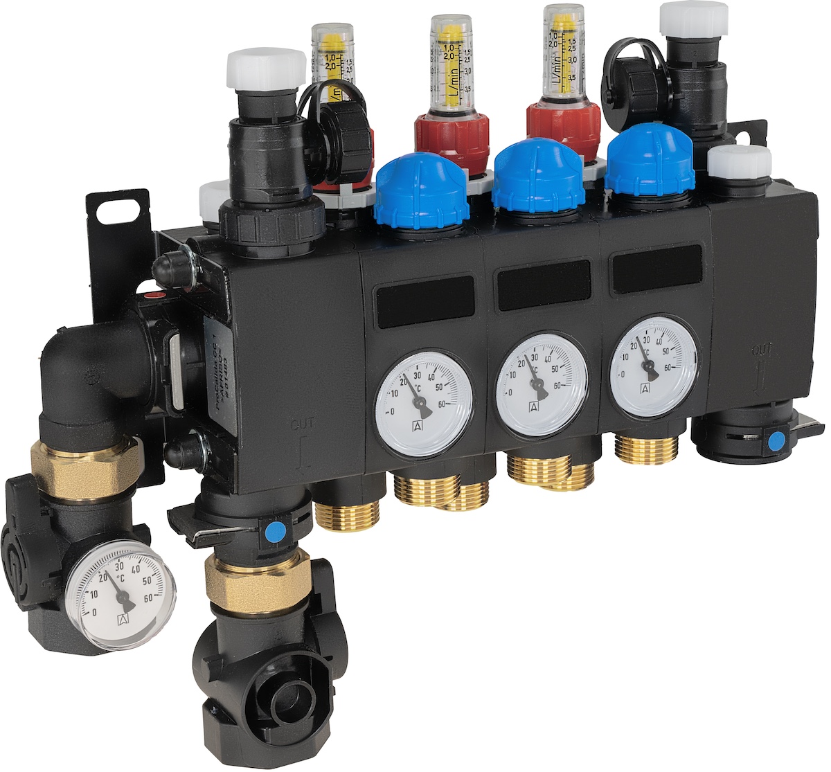 Rozprowadza ciepło / chłód ze źródła na poszczególne pętle instalacji płaszczyznowej.