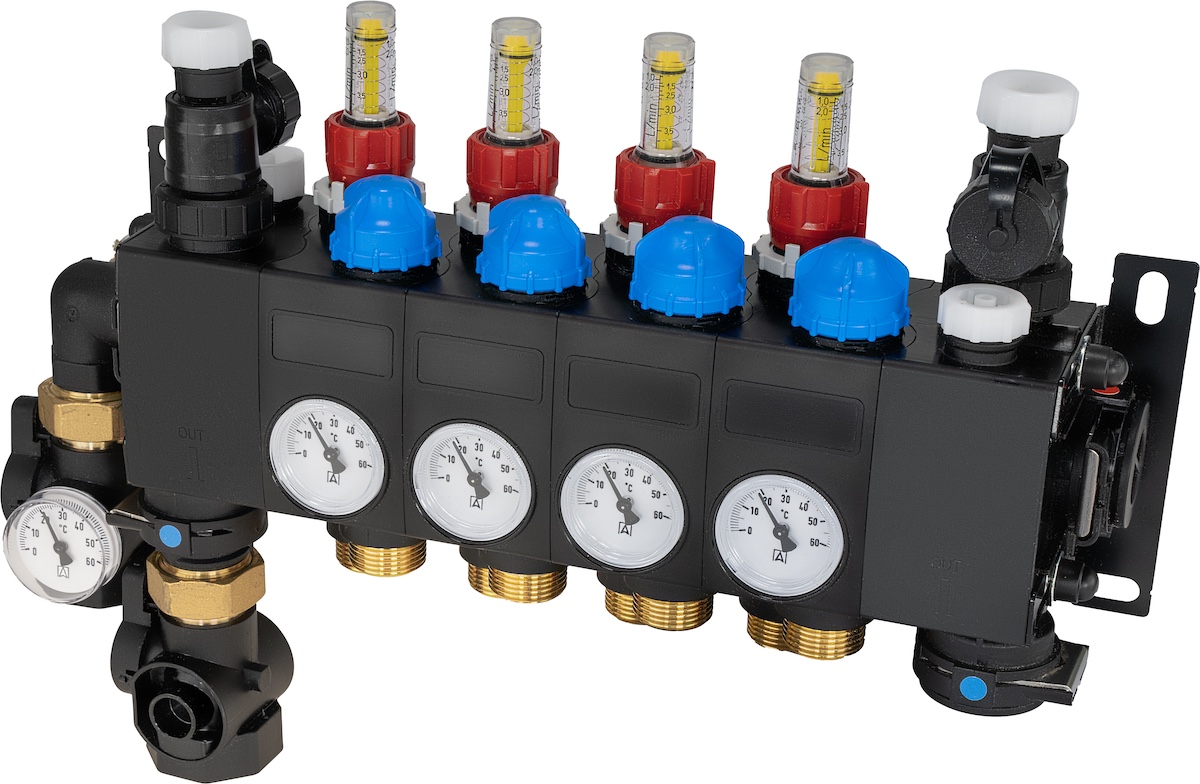 Rozprowadza ciepło / chłód ze źródła na poszczególne pętle instalacji płaszczyznowej.