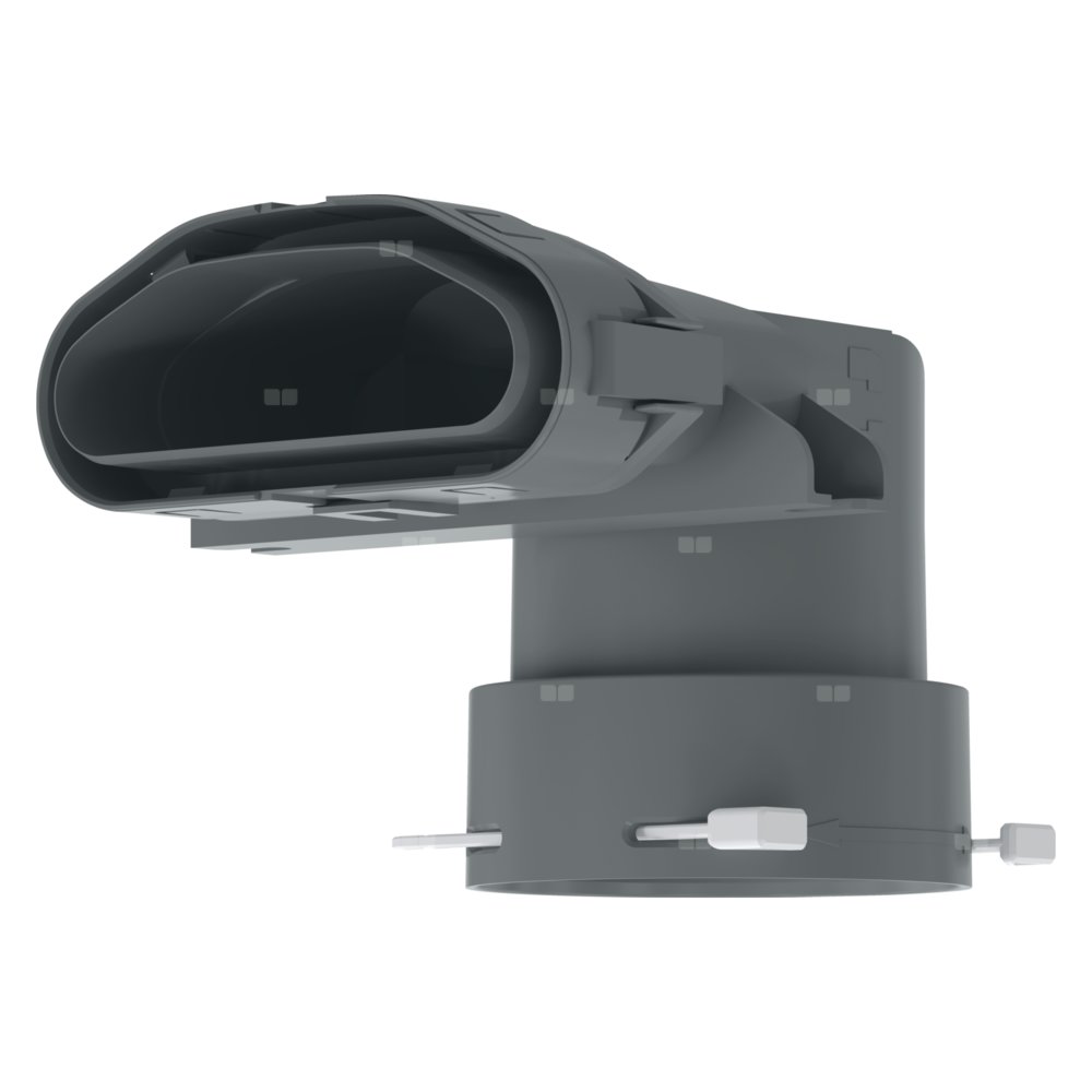 Zestaw 4 szt. kątowych przejść 90° z kanału płaskiego LVE RP 20 na 1 x fi75/90. Podłączenie dolne.