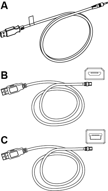 Przewód C , do wymiany danych lub ładowania innych urządzeń