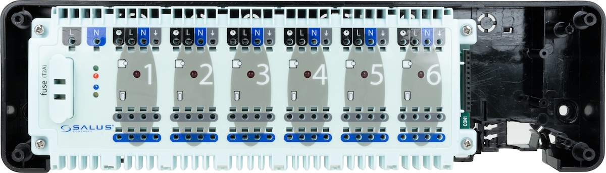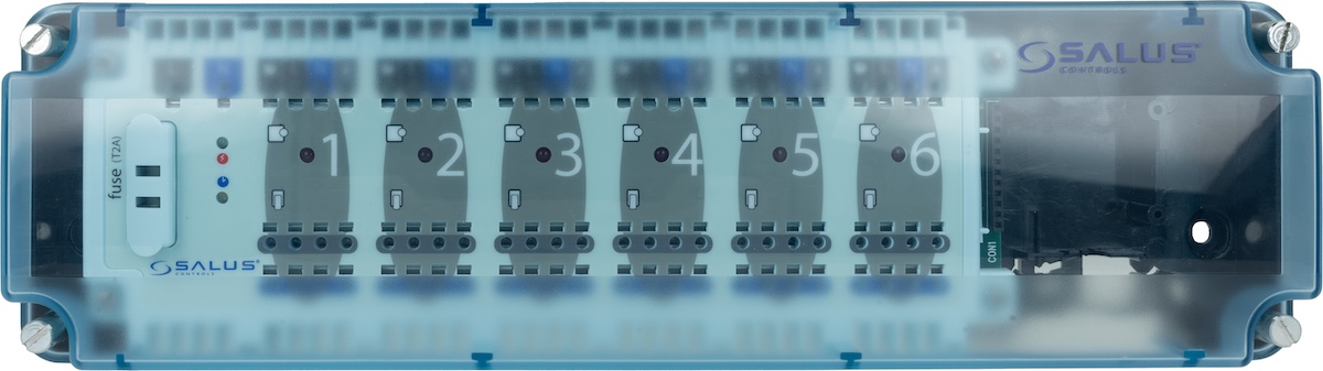 - Kontrola max 6 stref grzewczych/chłodzących (podłączenie max 6 regulatorów).