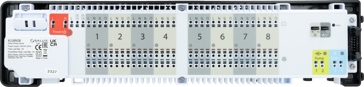 - Umożliwia podłączenie regulatorów do grzania/chłodzenia płaszczyznowego.- Łączy się z regulatorami przewodowo.