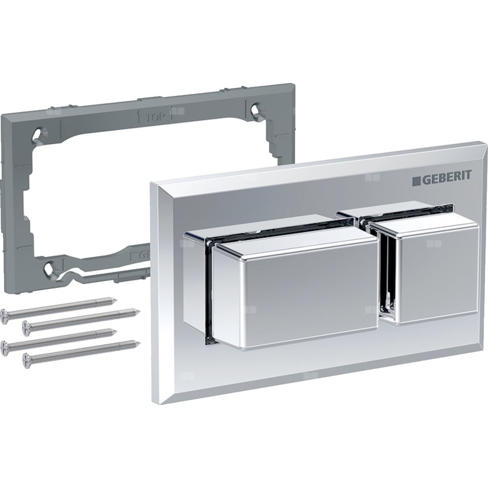 Przycisk do zdalnego uruchamiania spłukiwania Geberit, kształt geometryczny, pneumatyczny, wystający: Chrom błyszczący