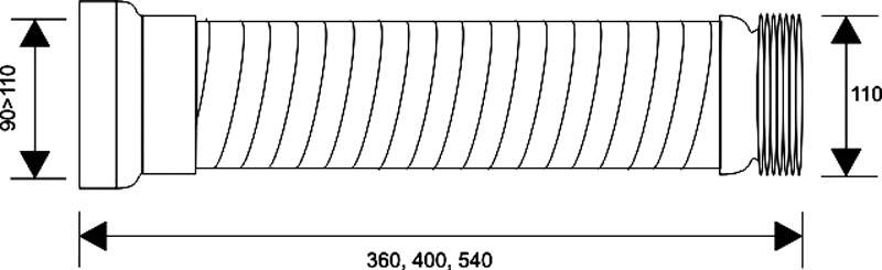 Przyłącze kanalizacyjne elastyczne L-540mm,wejście 90-110mm,wyjście 110mm