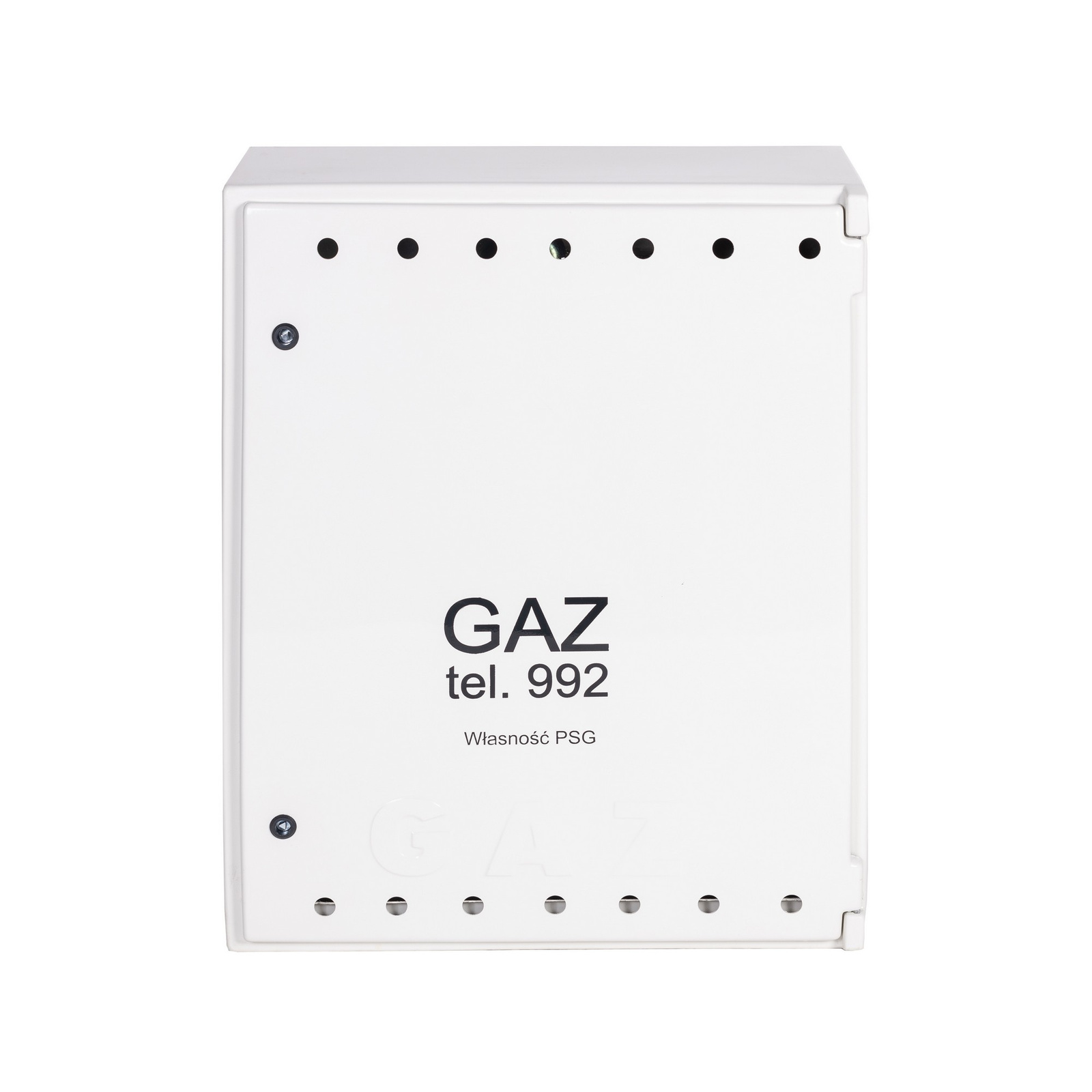 Punkt redukcyjno-pomiarowy na 2 gazomierze G4/G6, w pionie, w skrzynce z laminatu 670x870x250 - popielaty
