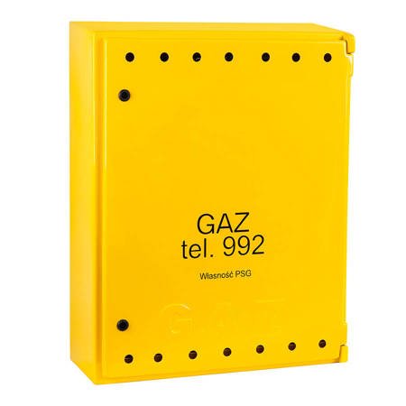 Punkt redukcyjno-pomiarowy na 2 gazomierze G4/G6, w pionie, w skrzynce z laminatu 670x870x250 - żółty