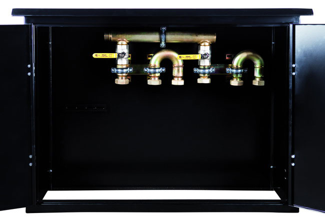 Punkt redukcyjno-pomiarowy na 2 gazomierze G4/G6, w poziomie, w skrzynce metalowej 1050x700x250 -popielaty